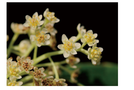 花多數,有香味,花苞徑 0.20.3 公分,呈頂生及腋生的聚繖花序排列,有時亦有呈圓錐花序狀,花冠約 0.50.6 公分;幼時剛長出來時有苞片包被,苞片上具有毛茸;花被筒鐘形,花被片 6 片,近似相等,長橢圓形,長 0.20.25 公分,外面平滑,裏面側有毛茸,完全雄蕊 9 枚,第一、二輪花絲長 0.15 公分,無腺體,基部有絨毛;第三輪花絲有腺體,基部有絨毛,腺體近似無柄;退化雄蕊箭形,柄有絨毛,第一、二輪花藥內向;第三輪花藥外向。